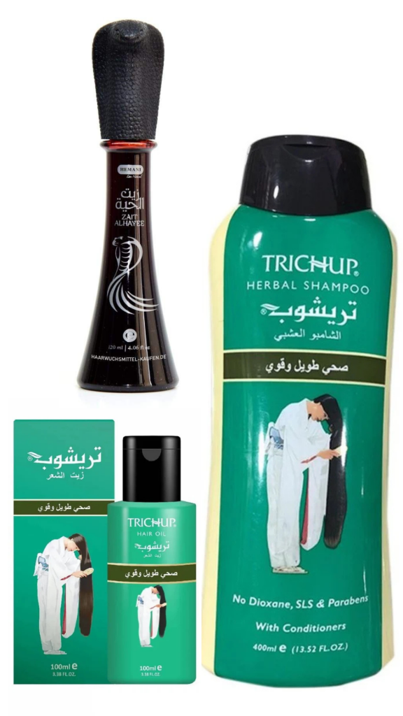 Champús y aceites para el cuidado, mantenimiento y tratamiento capilar.